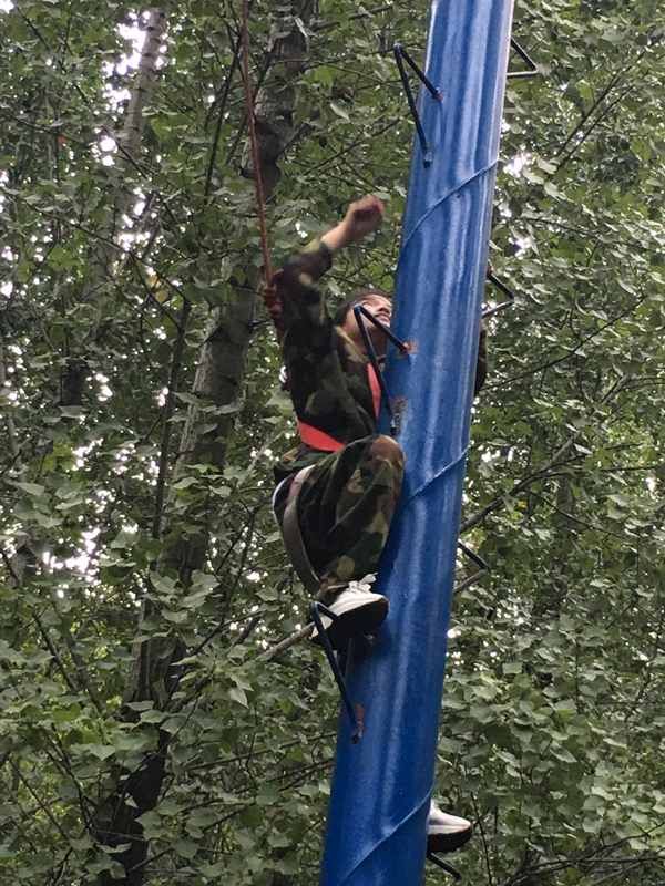 面對***后的逃生墻時,大家甘當人梯的精神,深深的感動了我,大家干勁十足,在吶喊的加油聲中,男生們努力的抓住每一雙手,我們踩在他們的背上,膝蓋上不斷的攀爬,那一刻他們用自己的臂膀支撐著我們完成***后的挑戰!